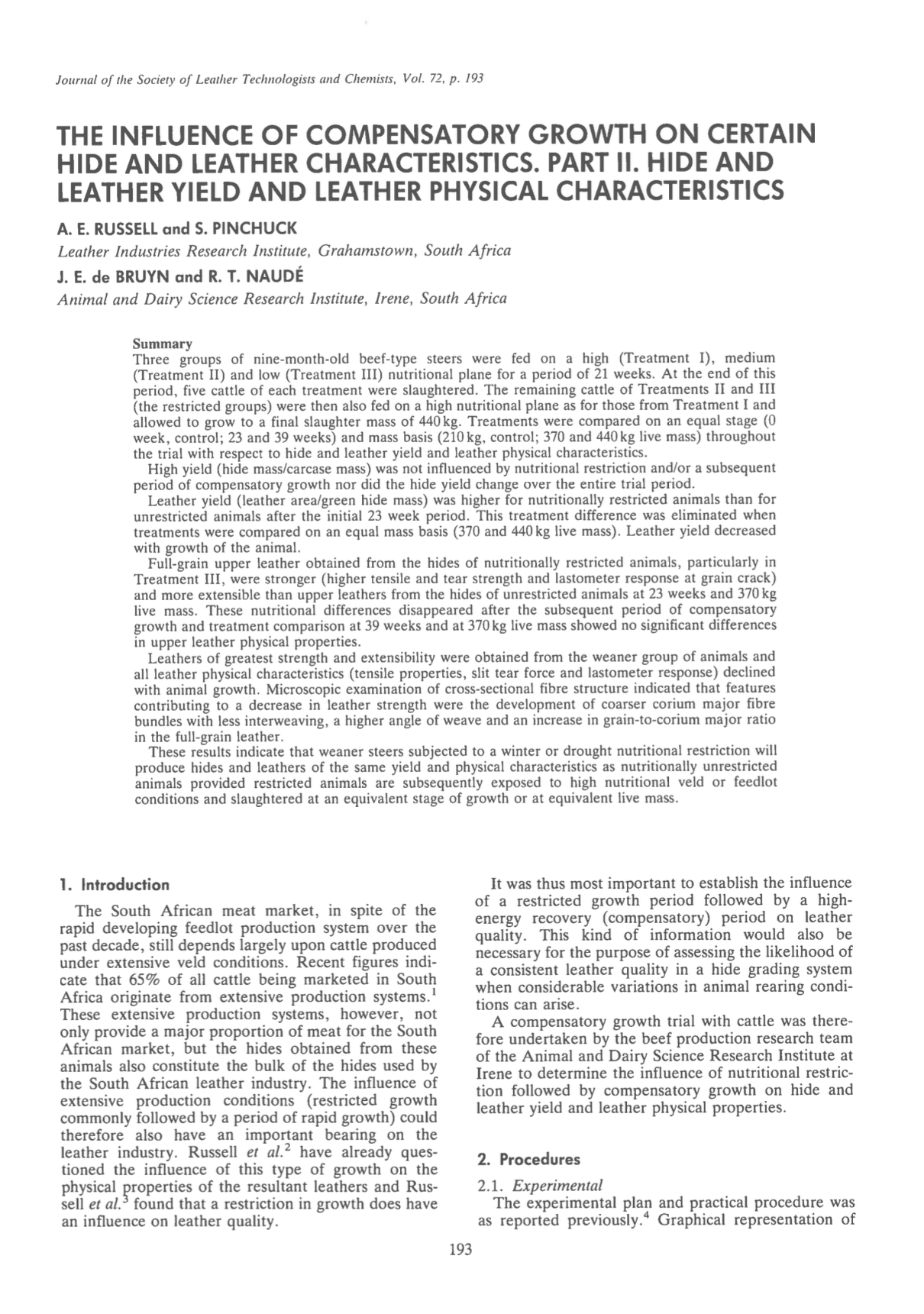 A. E. RUSSELL; S. PINCHUCK; J. E. de BRUYN; R. T. NAUDE