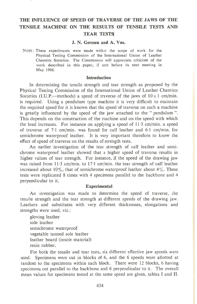 The Influence Of Speed Of Traverse Of The Jaws Of The Tensile Machine On The Results Of Tensile Tests And Tear Tests