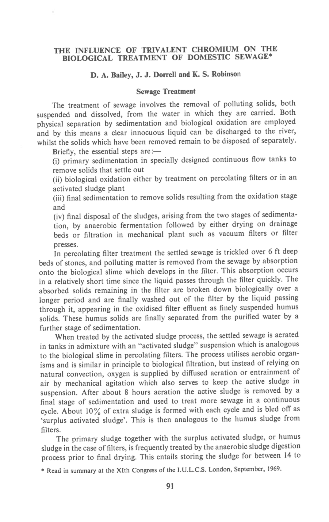 The Influence of Trivalent Chromium on the Biological Treatment of Domestic Sewage