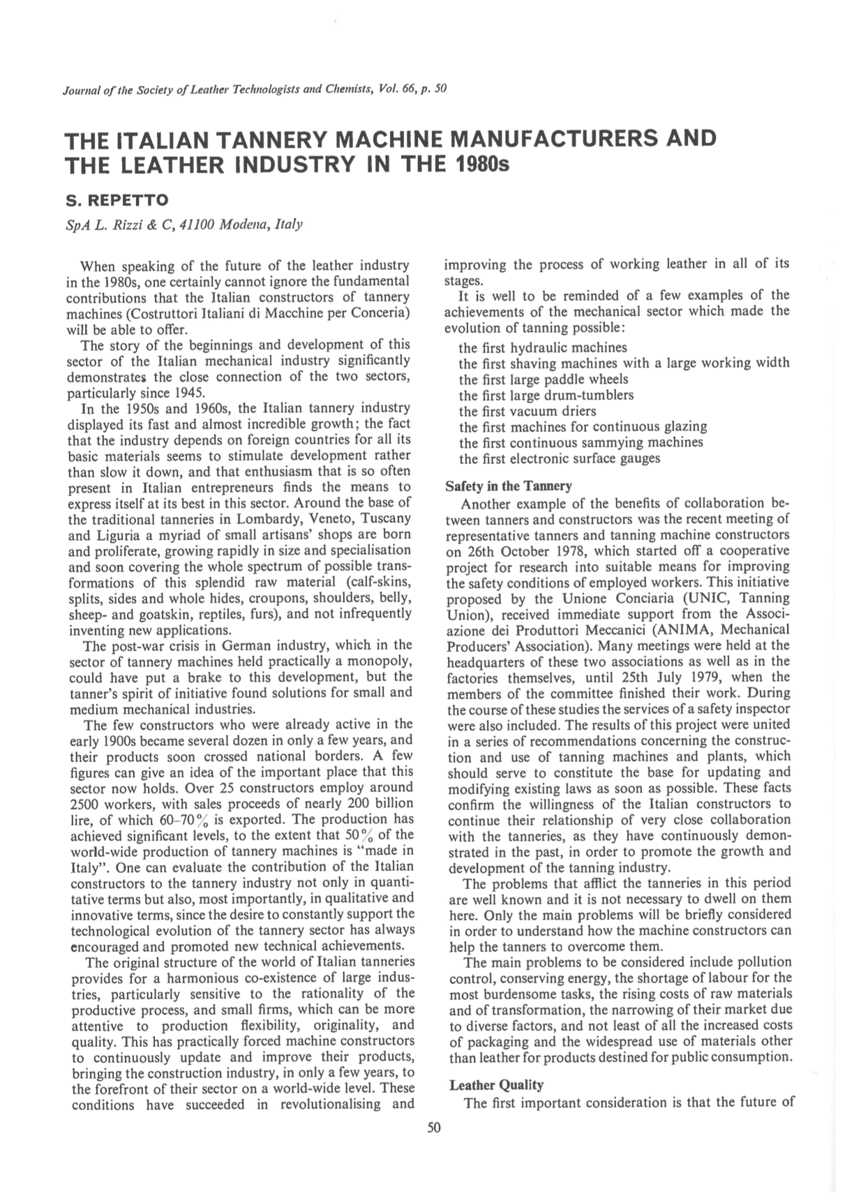 The Italian Tannery Machine Manufacturers and the Leather Industry in the 1980s