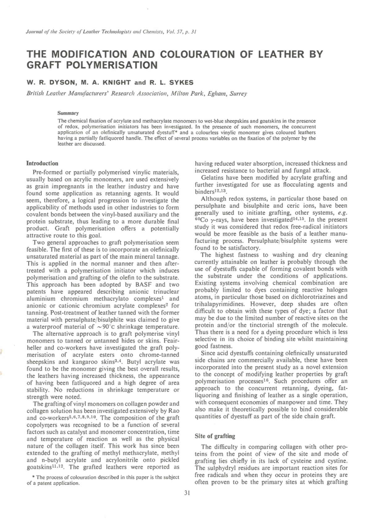 W. R. DYSON; M. A. KNIGHT; R. L. SYKES