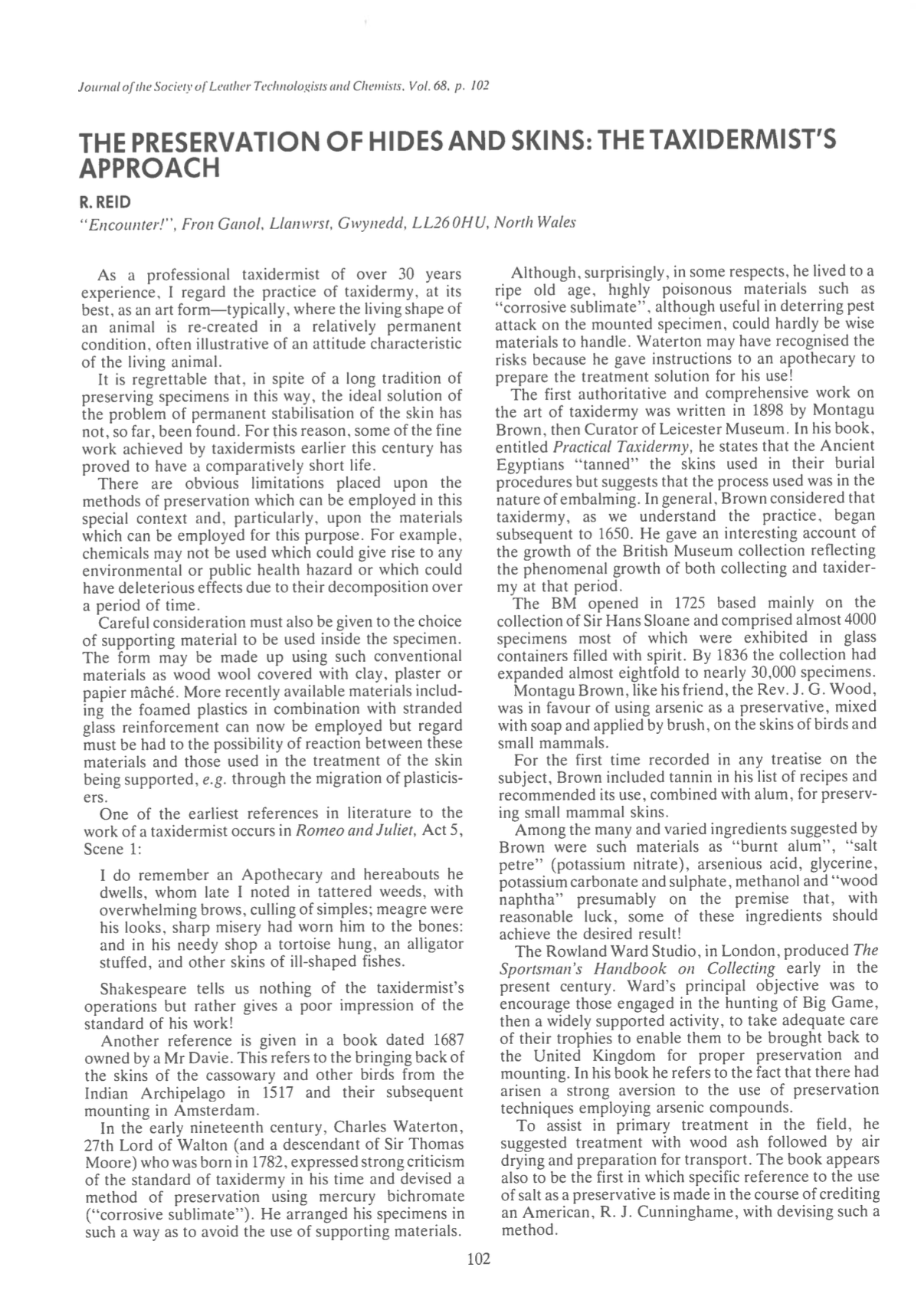 The Preservation of Hides and Skins: The Taxidermist’s Approach