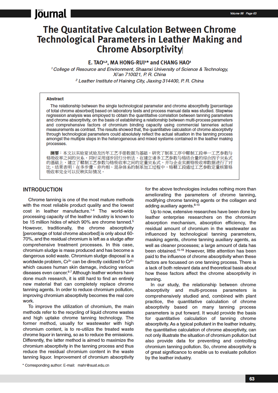 The Quantitative Calculation Between Chrome Technological Parameters in Leather Making and Chrome Absorptivity