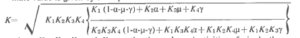 where K1, K2, K3 and K4 are the thermal conductivities of air, leather fibre, liquid water, and grease, respectively, and a, p, and y are the frac tions of the overall leather volume occupied by leather fibre swollen by absorbed water, by liquid water, and by grease. K1, K2, K:j and K4 can be taken as having the values 62, 800, 1500 and 350 microcalories cm.’ sec deg’. The value of y can be calculated directly from the mass of grease per unit volume of leather, and the values of a and i from data given in the paper.