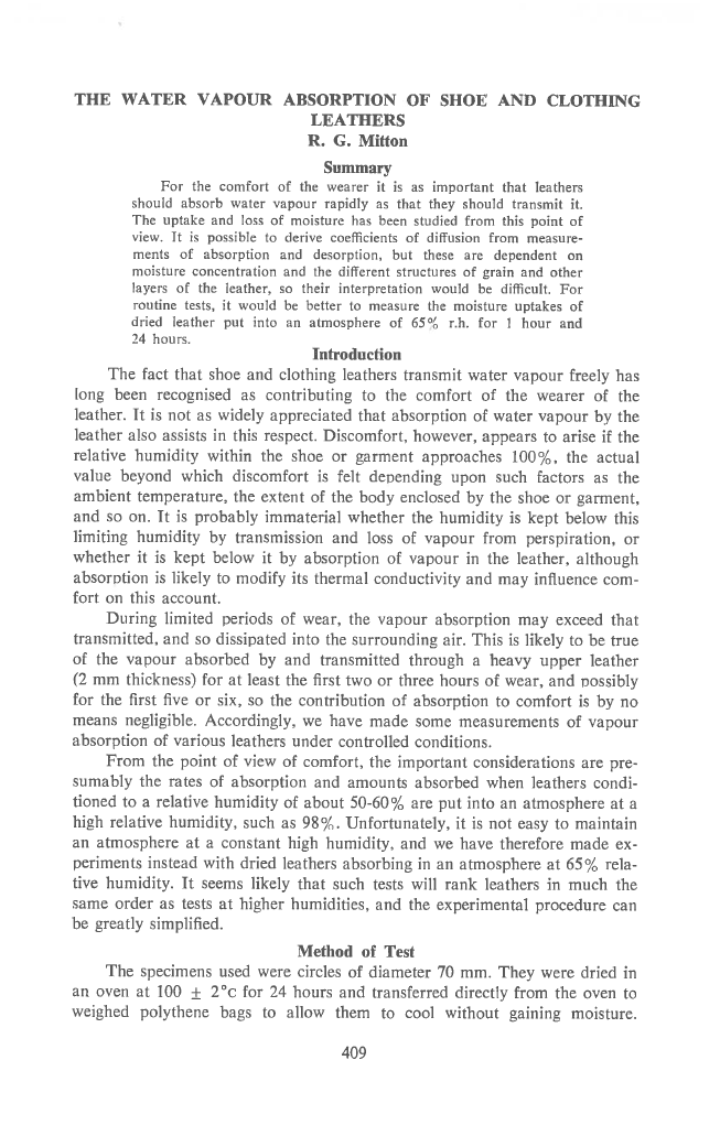 The Water Vapour Absorption Of Shoe And Clothing Leathers