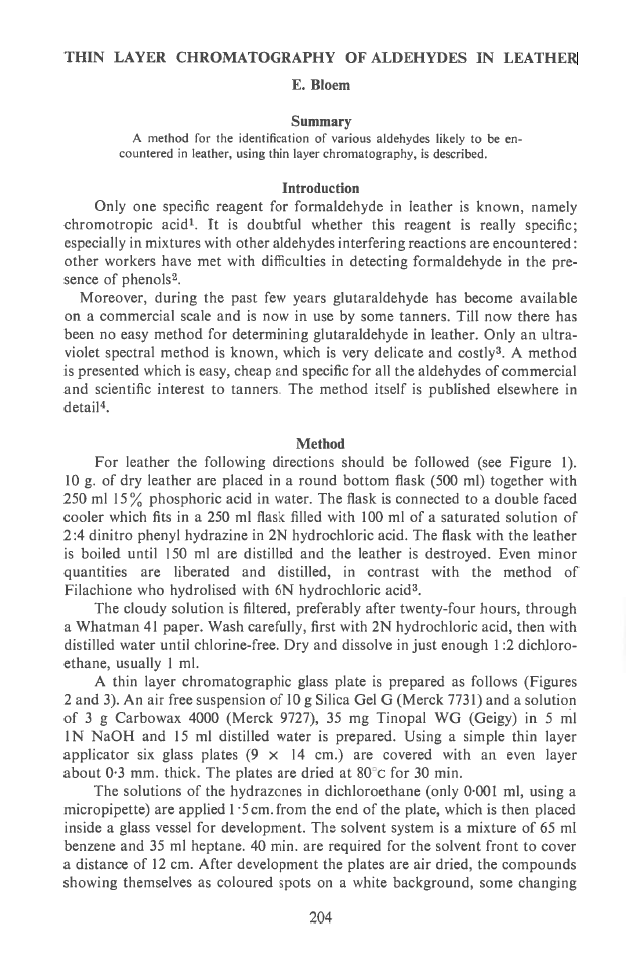 A method for the identification of various aldehydes likely to be en countered in leather, using thin layer chromatography, is described.