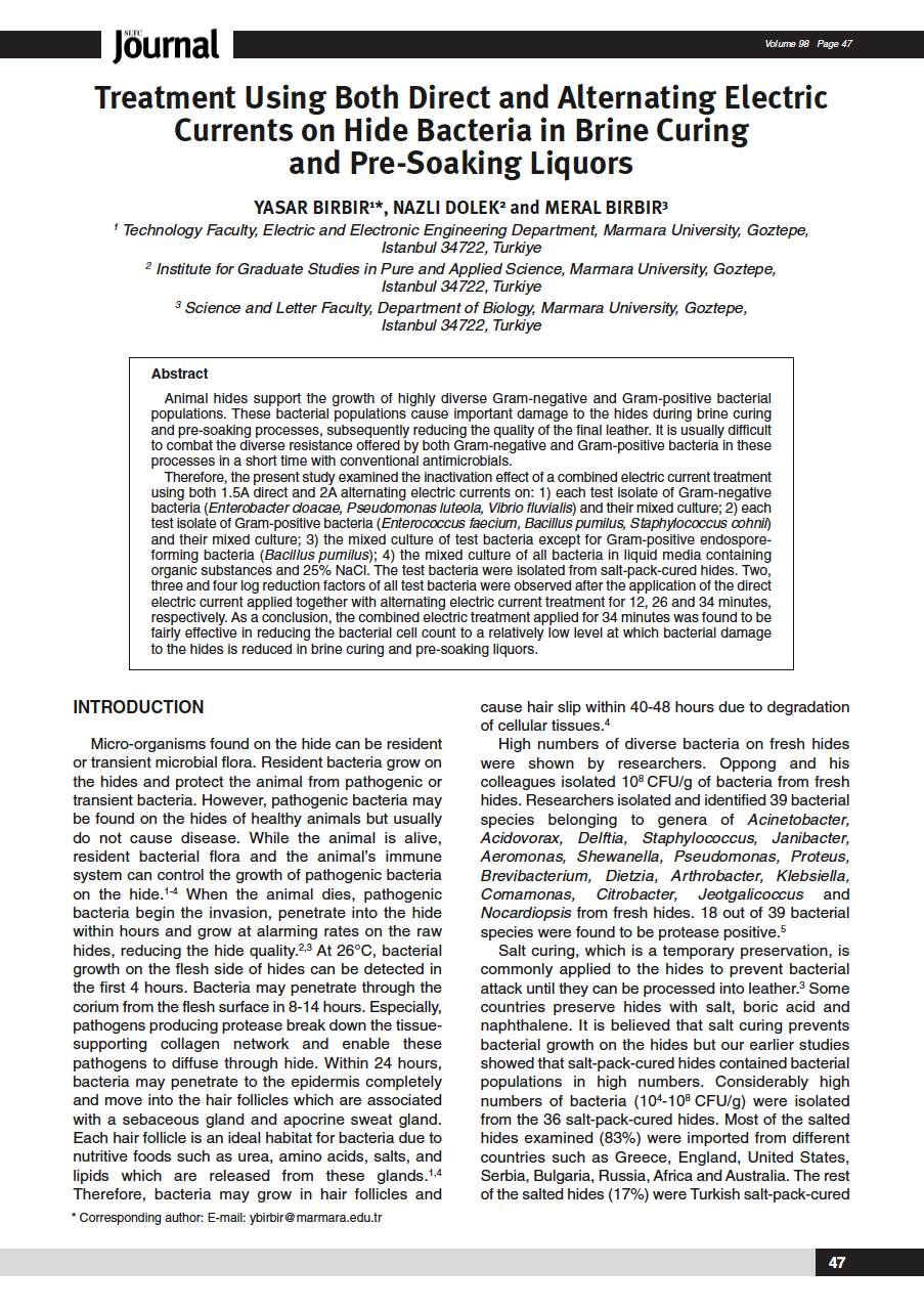 Treatment Using Both Direct and Alternating Electric Currents on Hide Bacteria in Brine Curing and Pre-Soaking Liquors