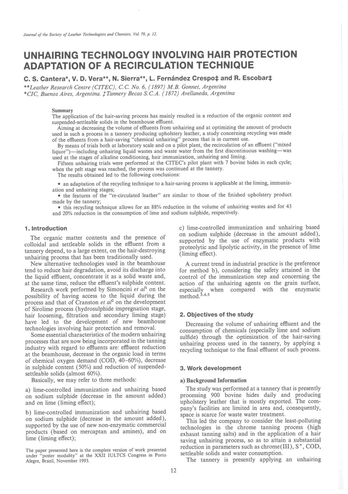 • this recycling technique allows for an 88% reduction in the volume of unhairing wastes and for 43 and 20% reduction in the consumption of lime and sodium sulphide, respectively.