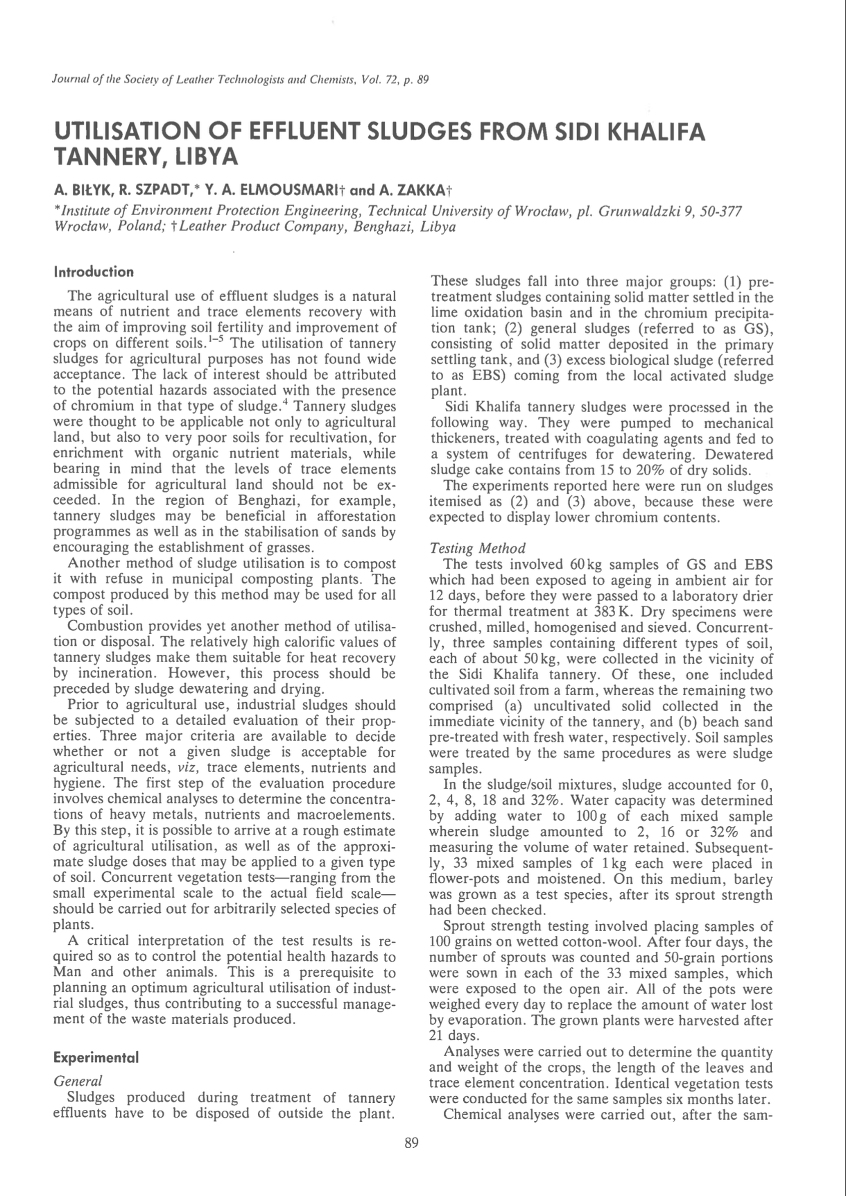 Utilisation of Effluent Sludges from Sidi Khalifa Tannery, Libya