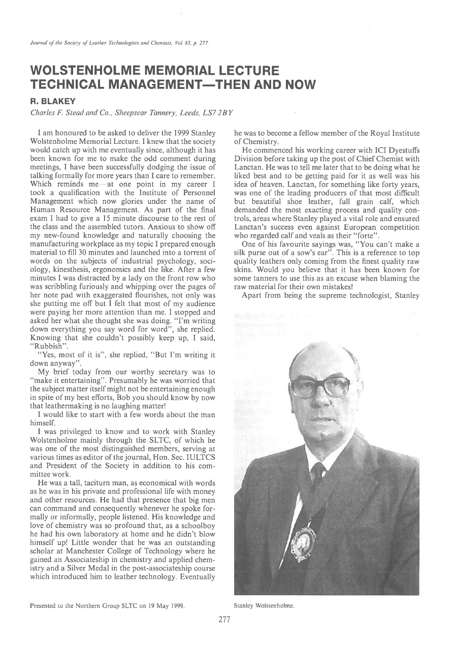 Wolstenholme Memorial Lecture Technical Management—Then And Now